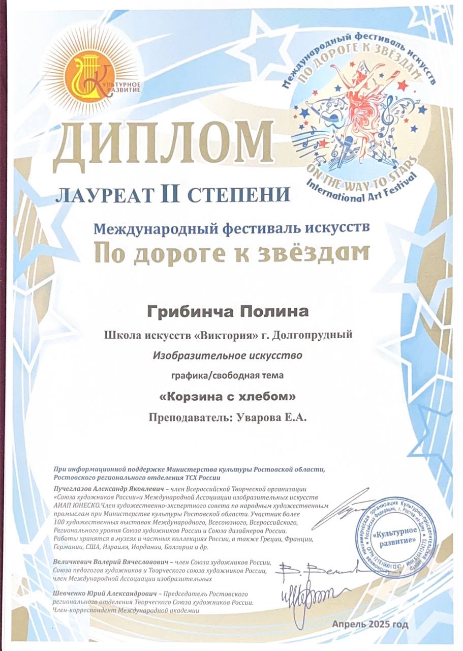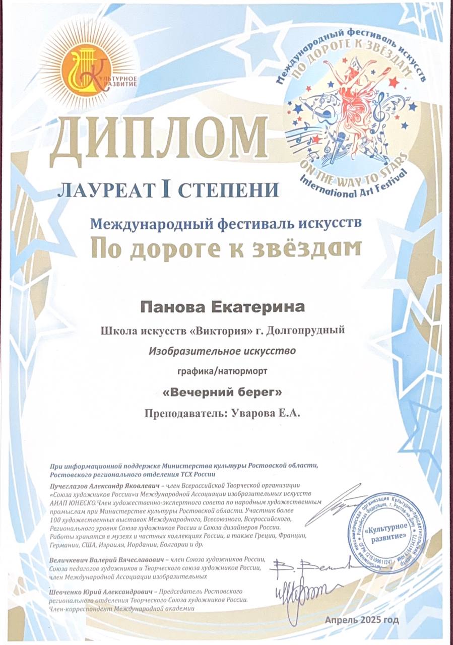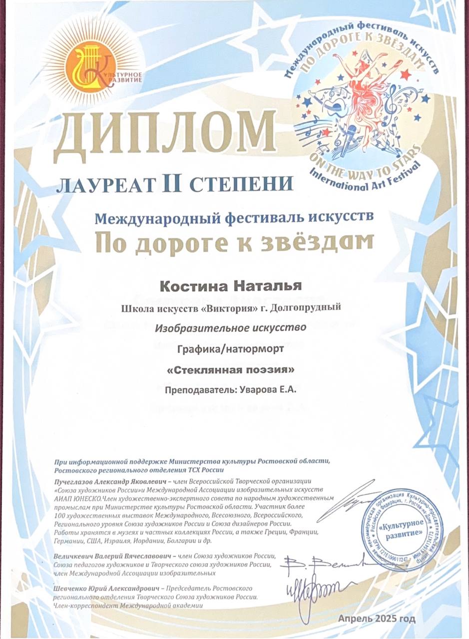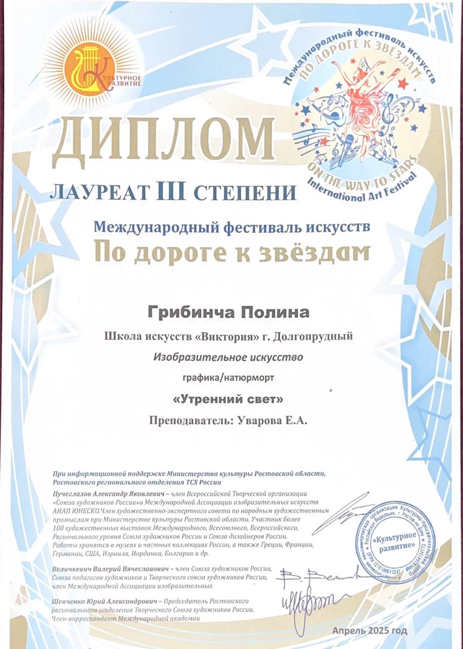 Поздравляем наших художников и их преподавателя Уварову Екатерину Андреевну с успешным участием в фестивале «По дороге к звездам»:
