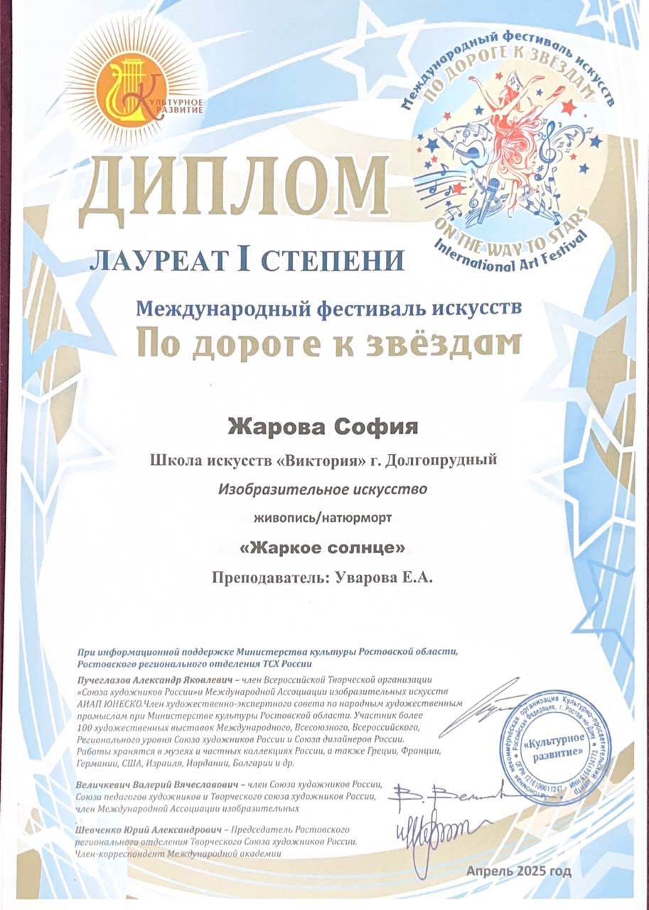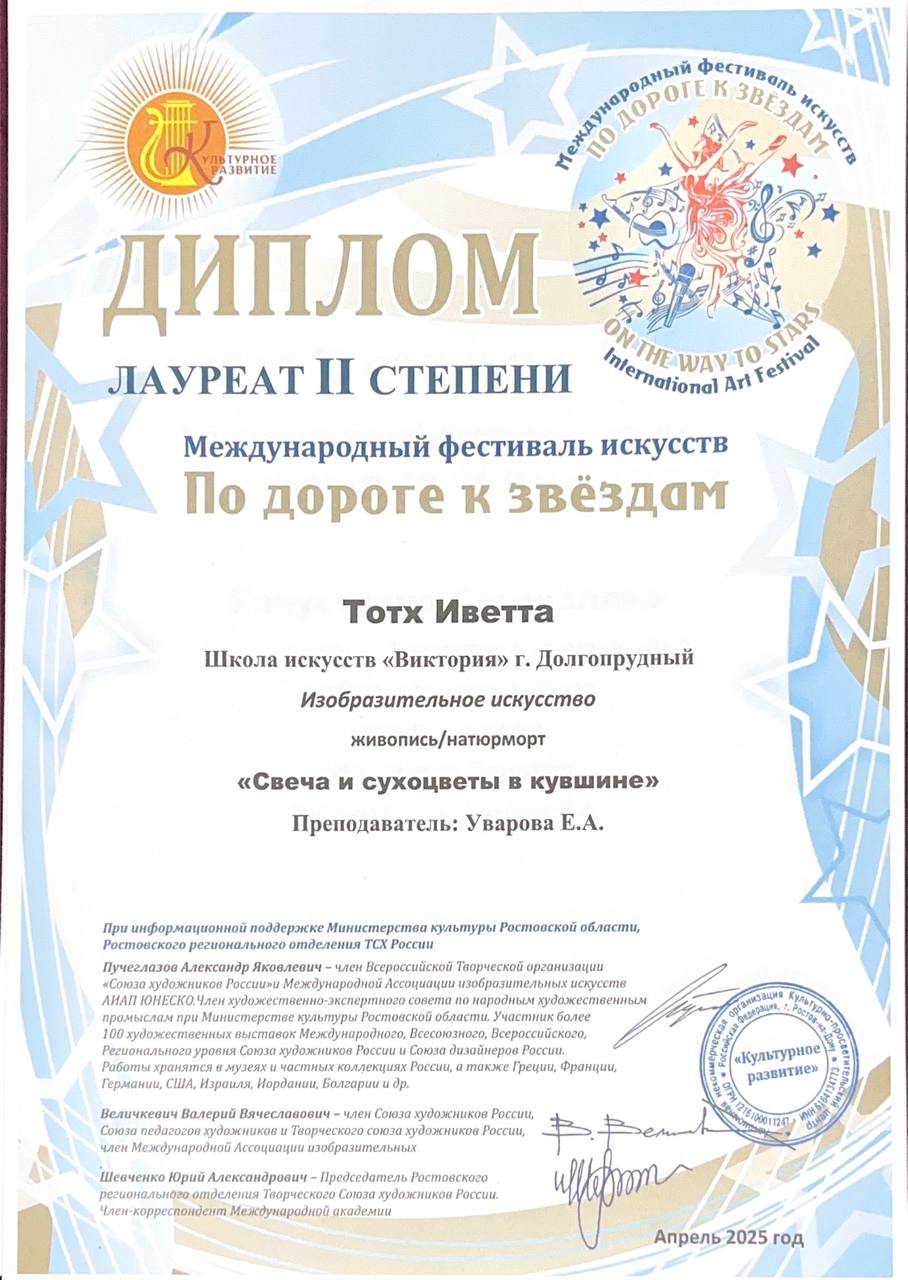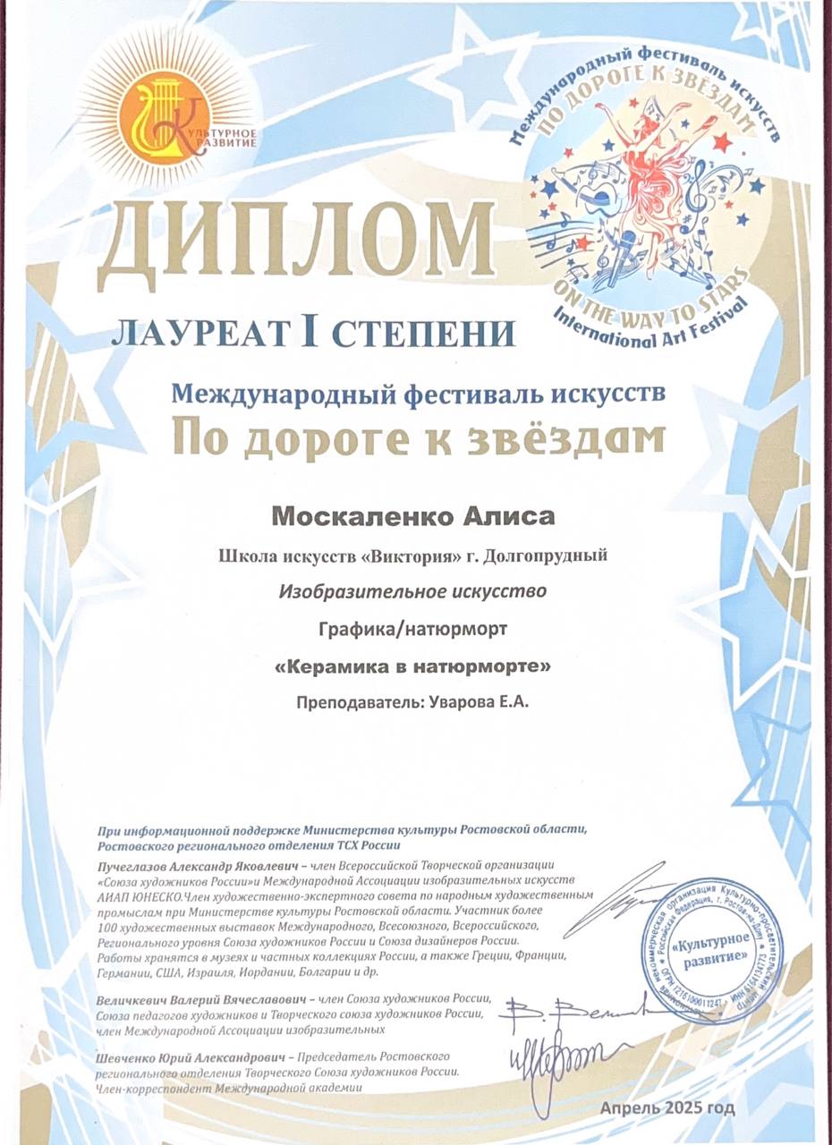 Поздравляем наших художников и их преподавателя Уварову Екатерину Андреевну с успешным участием в фестивале «По дороге к звездам»: