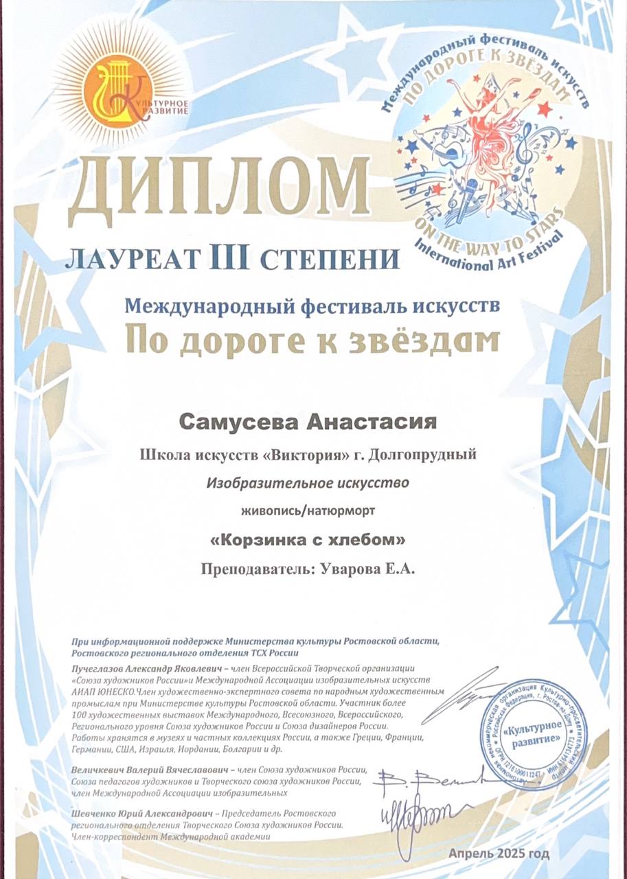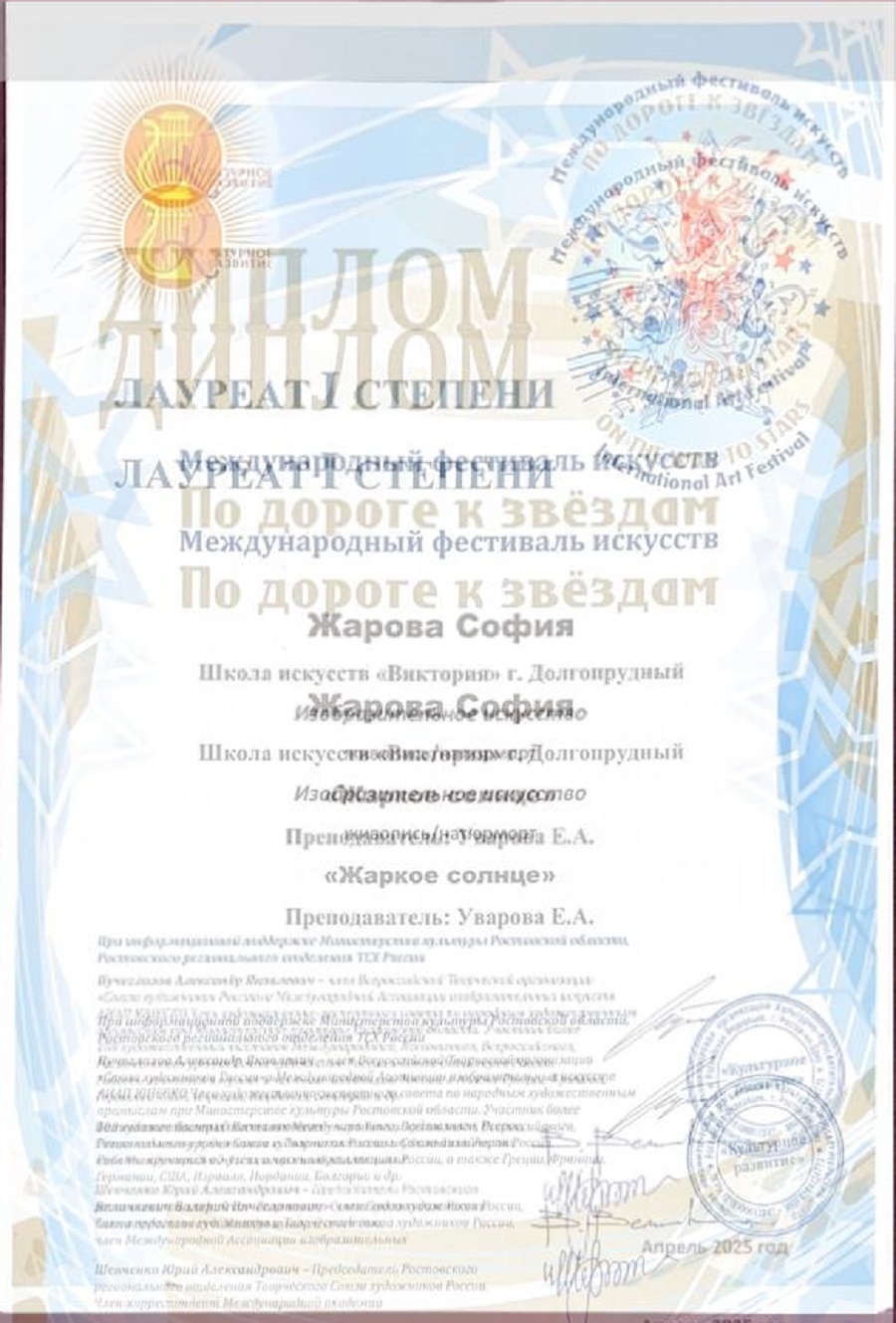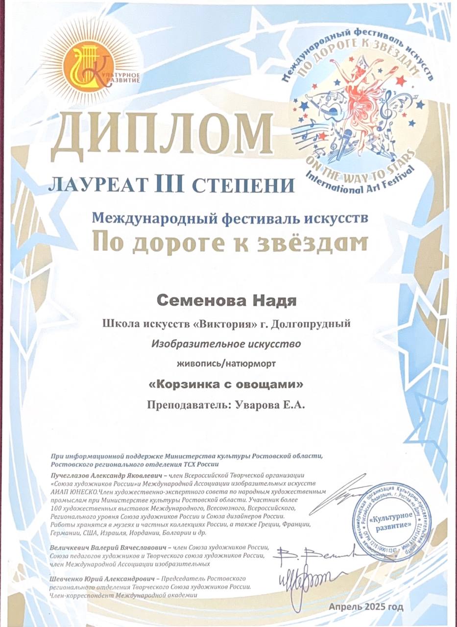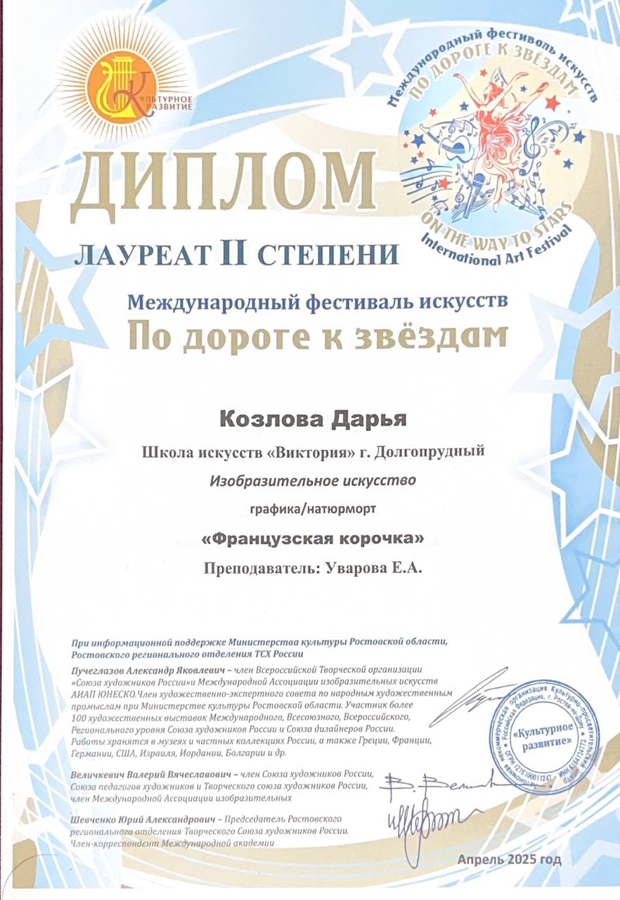 Поздравляем наших художников и их преподавателя Уварову Екатерину Андреевну с успешным участием в фестивале «По дороге к звездам»: