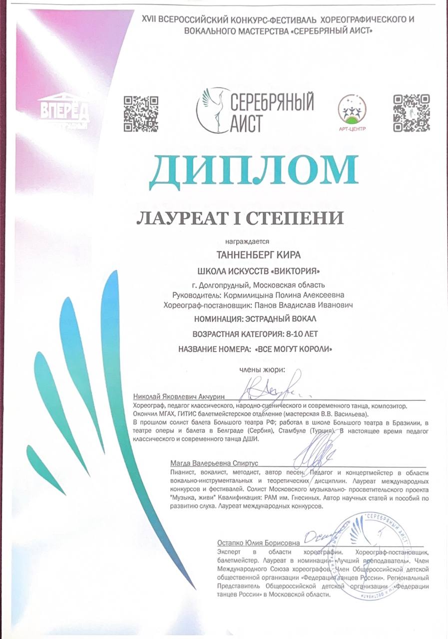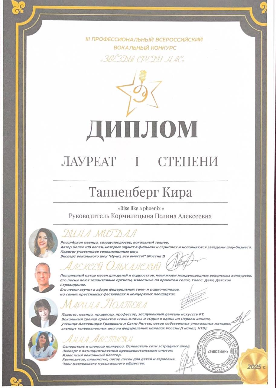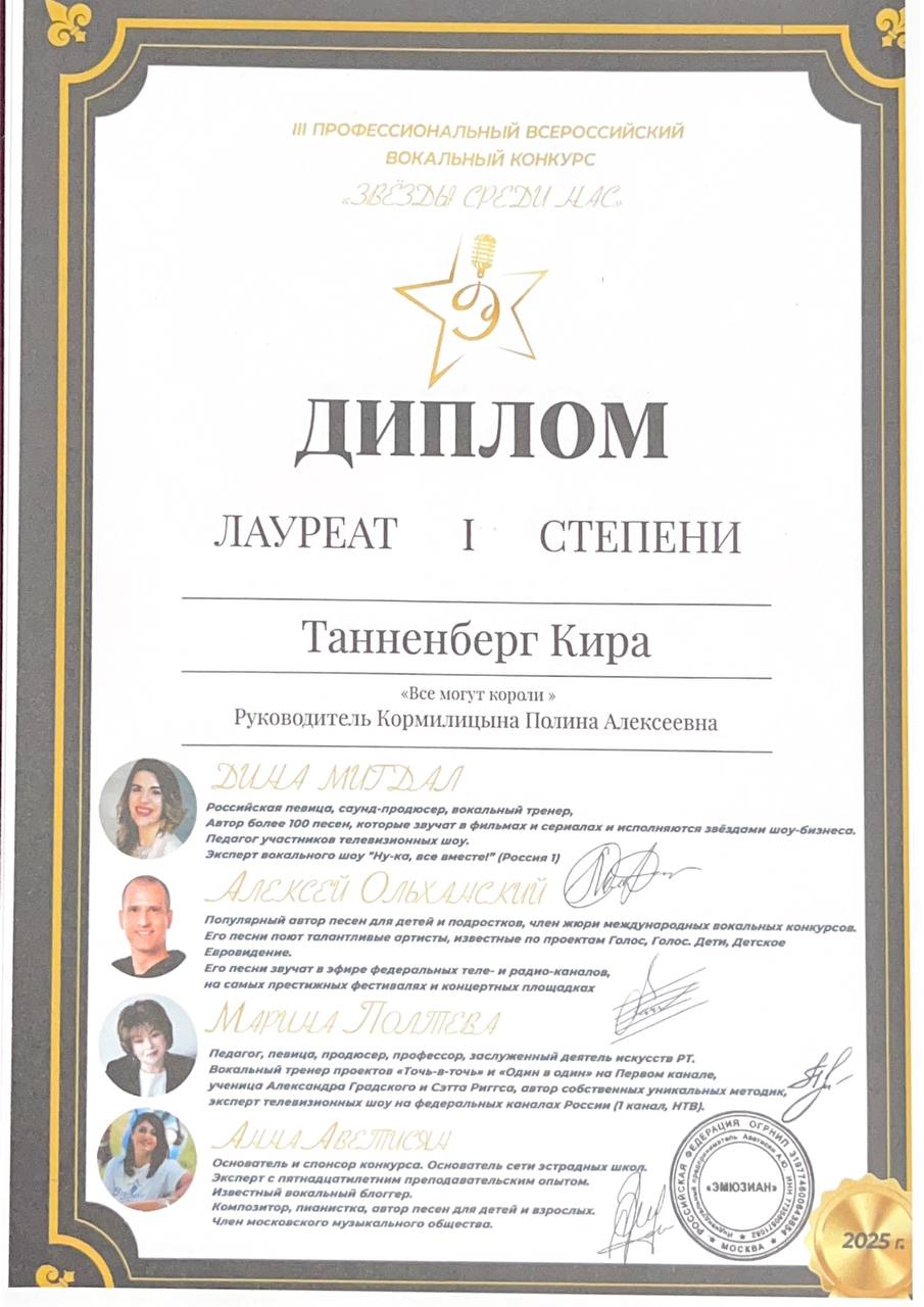 Танненберг Кира - Лауреат I степени и Лауреат I степени