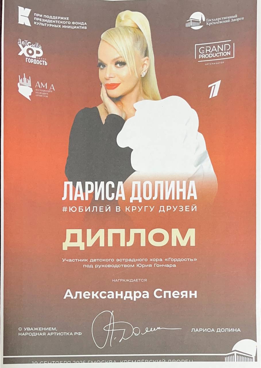 Поздравляем нашу юную вокалистку и её руководителя Алексанову Полину Алексеевну с успешным выступлением на концерте «Гордость»: