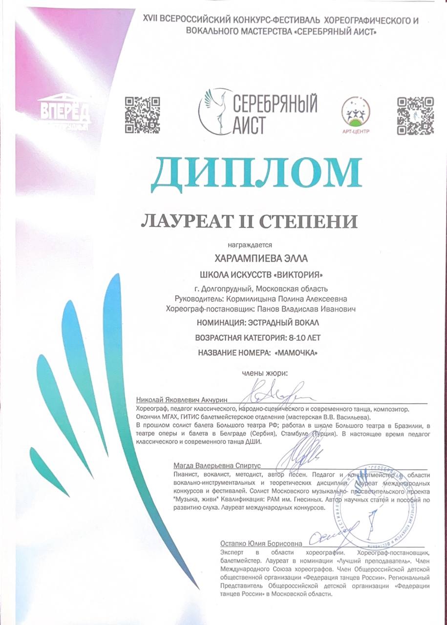 Харлампиева Элла - симпатия жюри, Лауреат I степени и Лауреат II степени