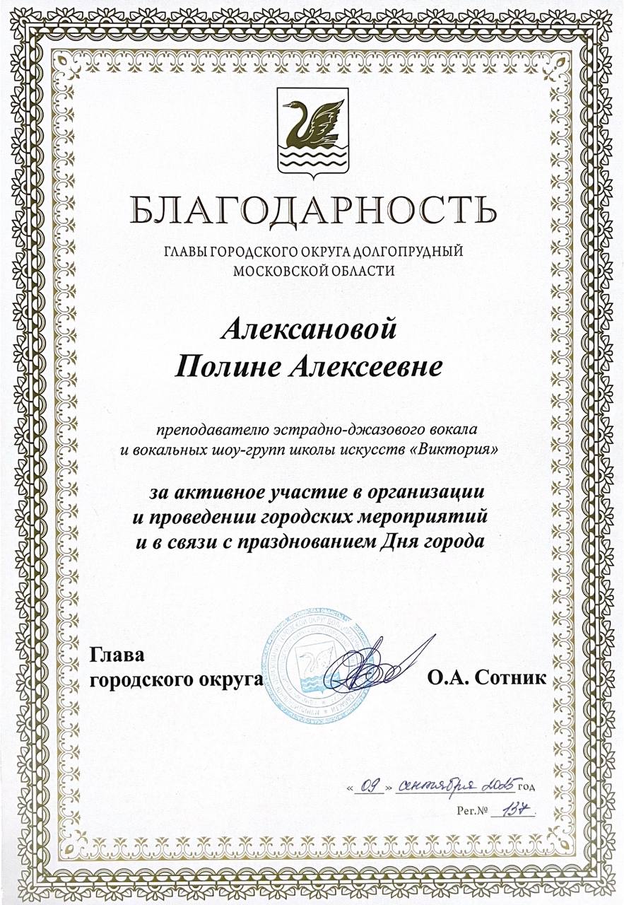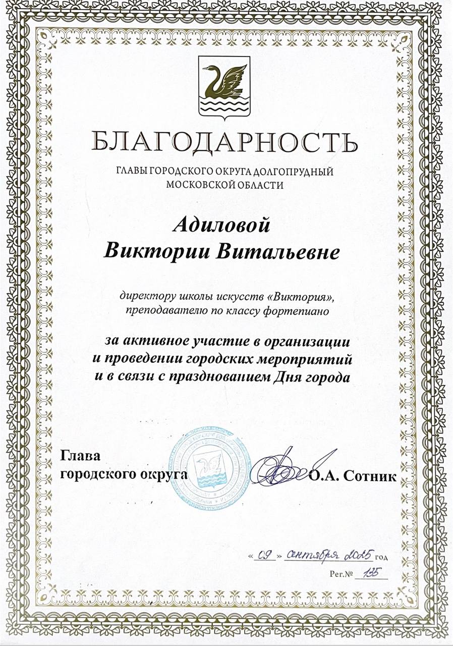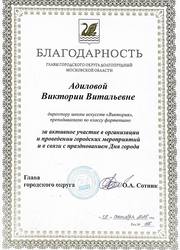 Благодарность главы городского округа Долгопрудный Московской области