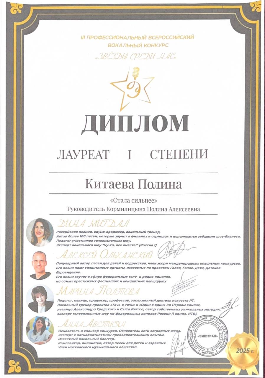 Китаева Полина - Лауреат I степени и Лауреат I степени