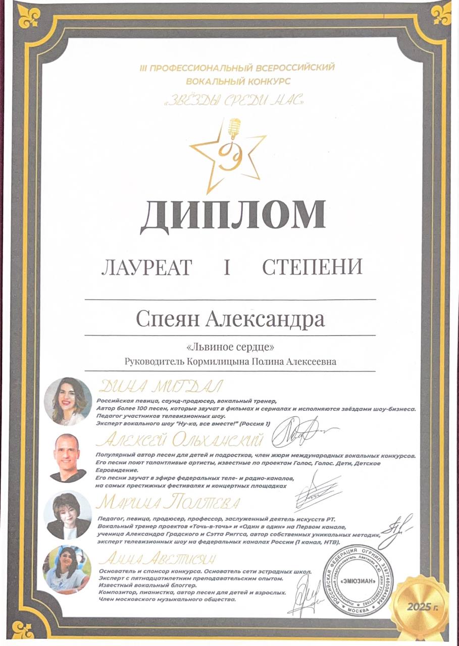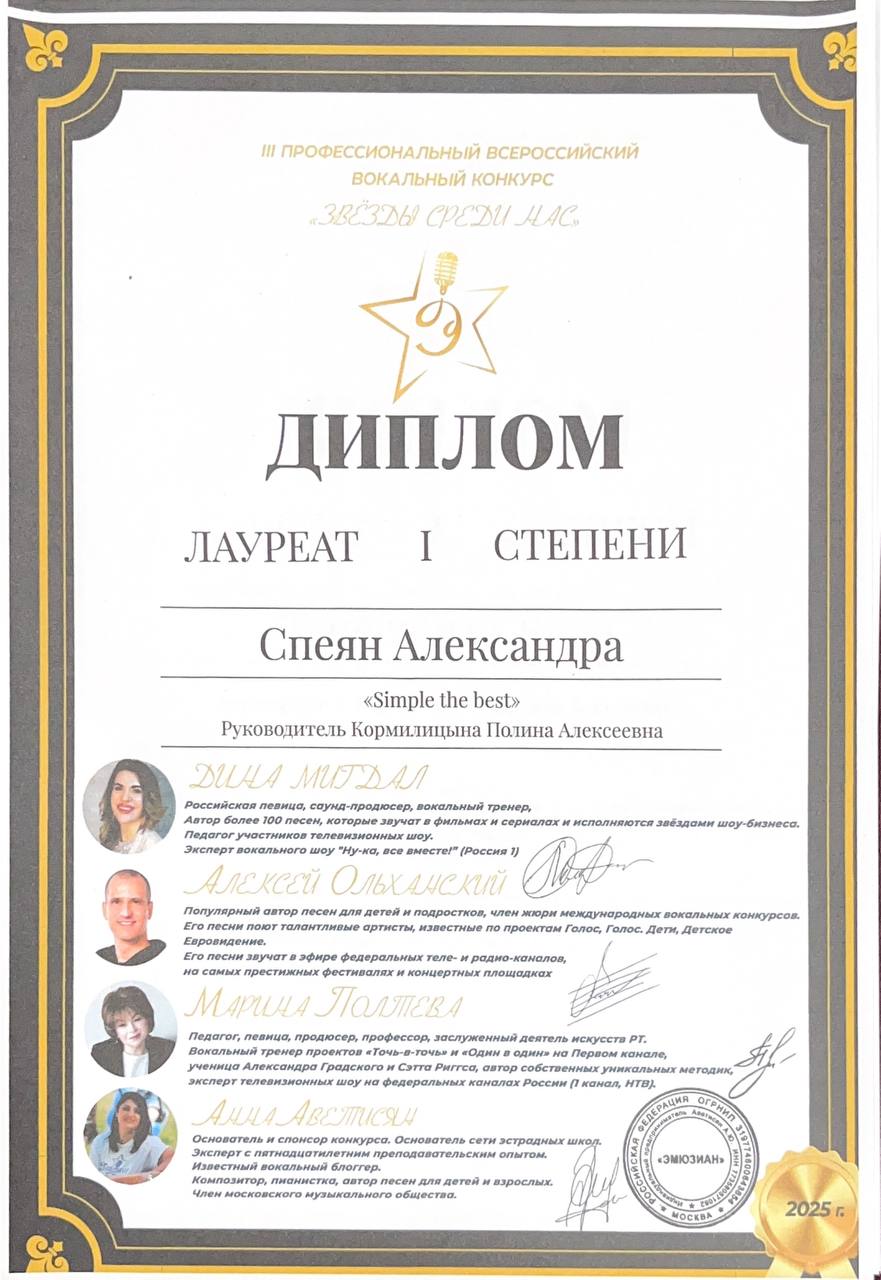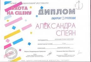 Спеян Александра - Лауреат I степени и Лауреат I степени
