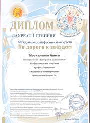 Москаленко Алиса - Лауреат I степени и Лауреат II степени