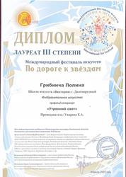 Грибинча Полина - Лауреат II степени и Лауреат III степени