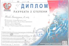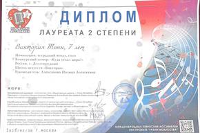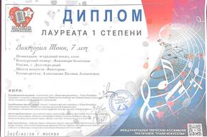 Тонн Виктория - диплом за артистизм, Лауреат I и II степеней