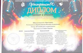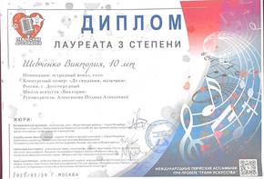 Шевченко Виктория - Лауреат III степени и Дипломант I степени