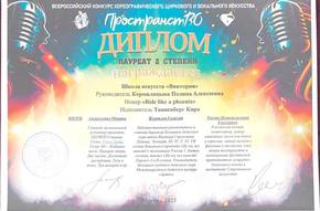 Поздравляем нашу юную вокалистку и её руководителя Алексанову Полину Алексеевну с успешным выступлением в конкурсе «Пространство»: